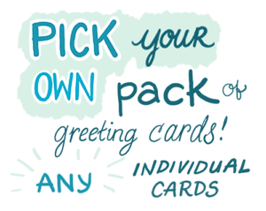 Greeting cards designed and produced by the artist, featuring exclusive illustrations and hand-lettered messages.