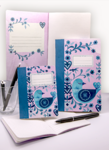Magpie & Pen notebooks have a classic softcover composition style. With 48 pages of premium writing paper, staple-bound in a fully-printed heavyweight cardstock cover.