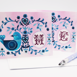 Monogrammed stationery feature hand-lettered initials on greeting cards, notepads, and more!